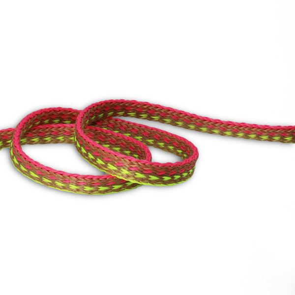 O Cadarço 7mm é um aviamento funcional e moderno, perfeito para agregar estilo e praticidade às criações. Com 7mm de largura, apresenta combinação de cores em bege, pink neon e amarelo neon, que reforçam um visual marcante e contemporâneo. Produzido em 100% poliéster, oferece alta resistência, durabilidade e acabamento uniforme, mantendo a performance mesmo em usos intensos. Sua estrutura firme garante segurança em aplicações que exigem tração e estabilidade. Indicado para amarrações, alças e nós em calçados e confecções em geral, o cadarço é versátil e atende tanto propostas esportivas quanto casuais.