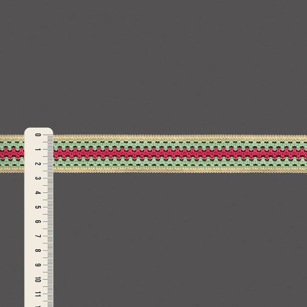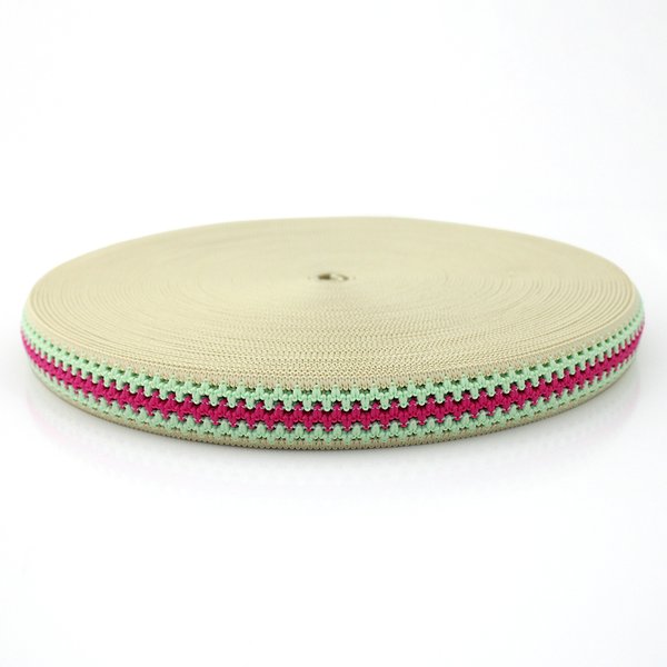 Elástico Crochê 2,6cm Bege-Rosa-Verde - Peça com 25m