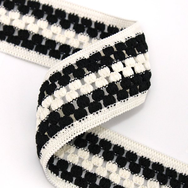 Sua construção em crochê com efeito listrado agrega textura artesanal e identidade visual às modelagens, proporcionando destaque em peças que exploram contrastes e recortes. É ideal para acabamentos e detalhes entre tecidos, trazendo definição e estilo para roupas femininas, casuais e contemporâneas.