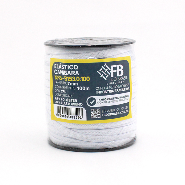 Com largura de 7 mm e alongamento entre 130% e 150%, oferece excelente capacidade de tração e recuperação, garantindo firmeza e conforto durante o uso. A composição em 66% poliéster e 34% elastodieno assegura durabilidade, estabilidade dimensional e bom desempenho nos processos de costura.