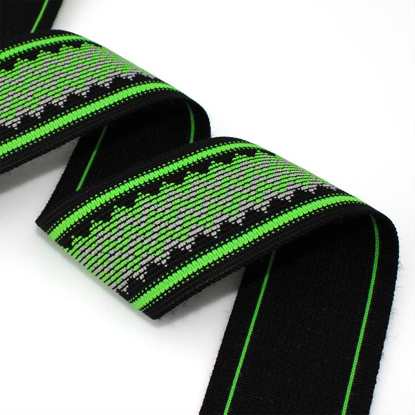 O Elástico Étnico Vibes é um aviamento moderno e cheio de personalidade, desenvolvido para destacar detalhes de moda com estilo e funcionalidade. Com 4,4 cm de largura, apresenta padrão étnico em cores contrastantes que valorizam os acabamentos, especialmente em cós. Produzido em 64% poliéster e 36% elastodieno, garante resistência, elasticidade e durabilidade, proporcionando adaptação ao corpo sem perder a forma original. Seu alongamento entre 70% e 90% oferece caimento confortável e firmeza. Ideal para composições urbanas e criativas.