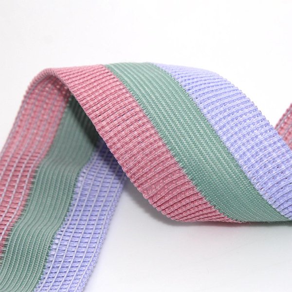 Elástico com textura pregueada e visual listrado, unindo conforto, elasticidade e estilo para acabamentos com identidade.