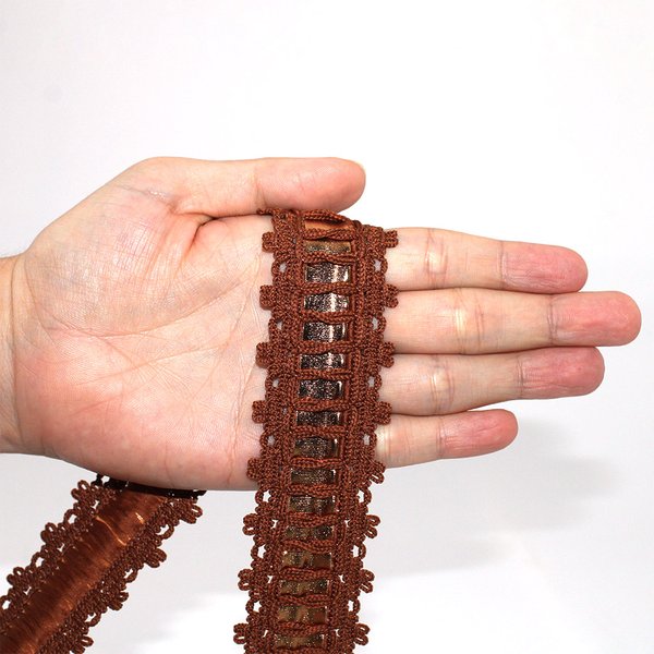 O Entremeio Passafita é um aviamento funcional e decorativo que valoriza recortes e acabamentos em diferentes segmentos. Apresenta estrutura firme e detalhada, ideal para composições que exigem sofisticação e praticidade. Produzido em 99% poliéster e 1% elastano, combina resistência, leve elasticidade e acabamento refinado. Na cor marrom/bronze, agrega elegância e versatilidade, permitindo harmonização com tons neutros ou contrastantes. É indicado para recortes entre tecidos na modelagem de roupas e também para aplicações em acabamentos da linha cama, mesa e banho, trazendo estilo e durabilidade às criações.