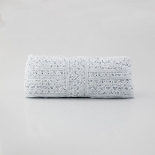 O Entremeio Zig Zag Duplo apresenta um design geométrico marcante em duas faixas paralelas de zigue-zague, ideal para composições que valorizam recortes e detalhes criativos. Com 4,5 cm de largura, é perfeito para aplicação entre tecidos, agregando sofisticação e acabamento artesanal às peças de moda feminina. Produzido em 100% algodão, oferece toque macio, caimento leve e aspecto natural, além de alta durabilidade e versatilidade.