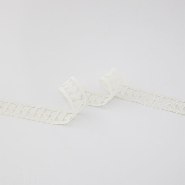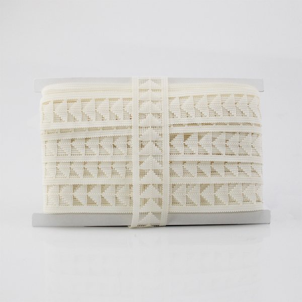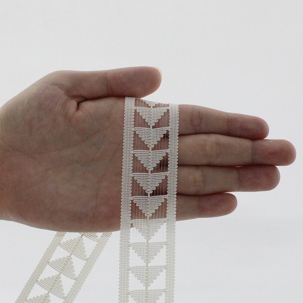 Fita estruturada com efeito vazado e padrão em flecha — perfeita para agregar movimento, contraste e sofisticação em peças de moda e artesanato.