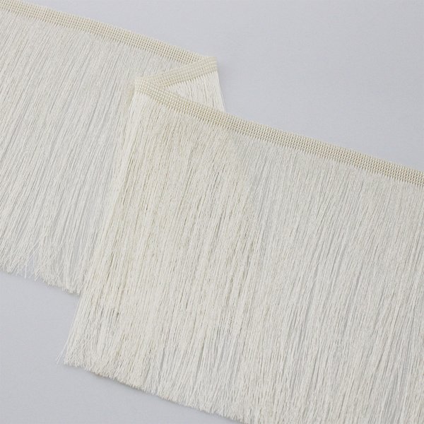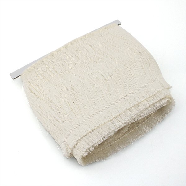 A Franja Fina Lisa de 13,8 cm é produzida em 100% poliéster, oferecendo excelente durabilidade, caimento fluido e estabilidade dimensional. Sua construção com fios contínuos proporciona movimento leve e uniforme, resultando em um acabamento sofisticado e elegante.