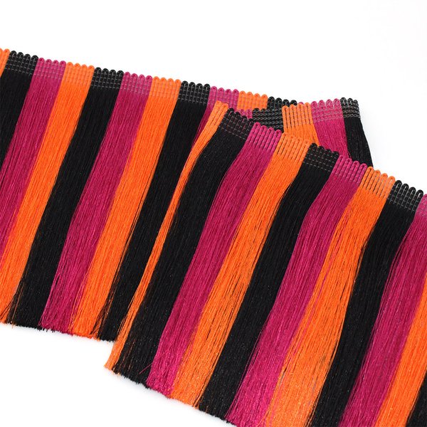 A Franja Listrada Ravena é um aviamento imponente que combina movimento e cores intensas para destacar qualquer criação. Com 13,6 cm de largura, apresenta listras em preto, magenta e laranja, resultando em um visual vibrante e contemporâneo. Produzida em 98% poliéster e 2% poliamida, oferece resistência, durabilidade e leve brilho, mantendo caimento fluido e sofisticado. Sua estética marcante valoriza modelagens criativas e garante impacto visual nas composições. Ideal para acabamentos em barrados e mangas, a franja também pode ser aplicada em camadas, criando efeitos de volume e textura diferenciada.