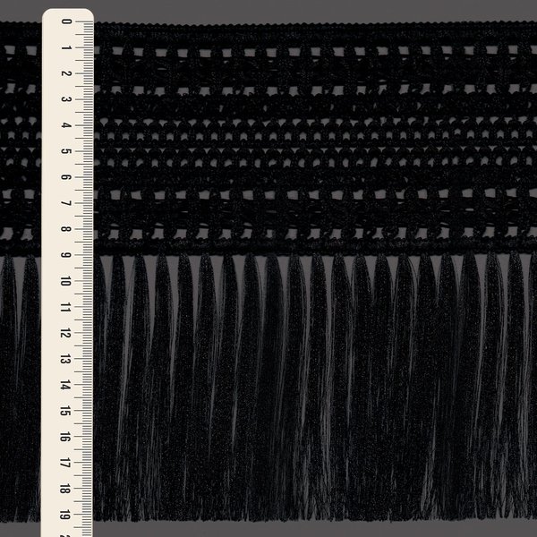 A Franja Macramê Pingente é um aviamento imponente que agrega movimento e sofisticação às criações. Com 19,3 cm de largura, combina base trabalhada em macramê com pingentes alongados, resultando em um acabamento artesanal e elegante. Produzida em 100% poliéster, oferece resistência, caimento fluido e praticidade na aplicação. Indicada para acabamentos em barras e mangas, valoriza as modelagens com textura e identidade visual marcante.