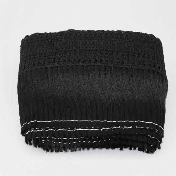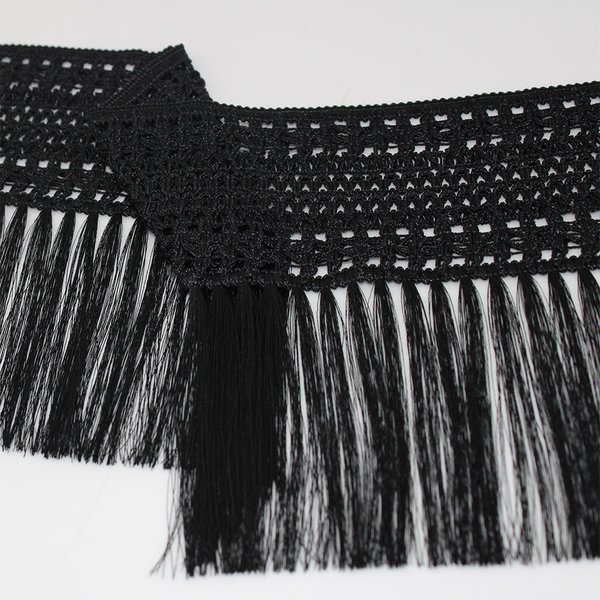 Franja estruturada em macramê com pingentes — perfeita para agregar movimento, textura e elegância em peças de moda e decoração.