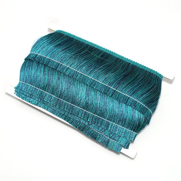 Franja com caimento suave e visual uniforme, ideal para agregar movimento e sofisticação a peças de moda e design.