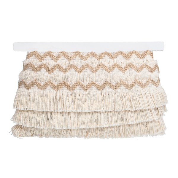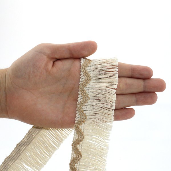 Franja de visual natural, com textura marcante e excelente aplicação em peças criativas e conceituais.
