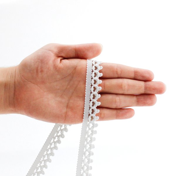 A Renda Bolinha Bico Poppy de 1,9 cm é produzida em 100% poliéster, garantindo resistência, durabilidade e excelente estabilidade dimensional. Sua construção com bolinhas delicadas e bico decorativo cria um visual leve e texturizado, ideal para detalhes que valorizam os acabamentos das peças.