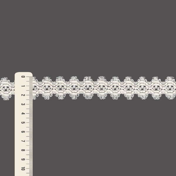 A Renda Gabriela de 2,5 cm é produzida em 100% algodão, oferecendo toque natural, excelente respirabilidade e estabilidade dimensional. Seu desenho delicado cria textura leve e artesanal, ideal para composições que valorizam detalhes sutis nas peças.