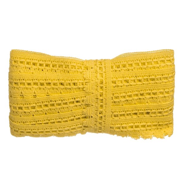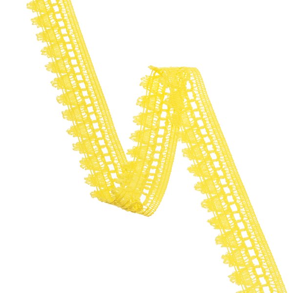 A Renda Para Bola de 2,8cm é um aviamento versátil e resistente, confeccionado em 100% poliéster. Seu desenho vazado com efeito telado proporciona acabamentos modernos e funcionais, agregando textura e identidade artesanal às modelagens. É ideal para aplicações em mangas, barras e detalhes laterais de calças, vestidos, blusas e saias.
