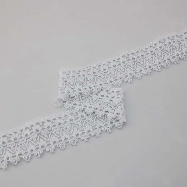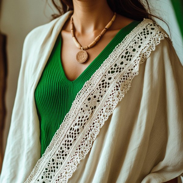 A Renda Zig Zag Bolinha Lolla traz uma estética artesanal diferenciada, com desenho em zigue-zague e detalhes em bolinhas que agregam sofisticação e leveza às criações. Com 5,2cm de largura, é ideal para aplicações em mangas, barras e laterais teladas de calças, vestidos, blusas e outras peças de moda feminina que buscam acabamento refinado com impacto visual.